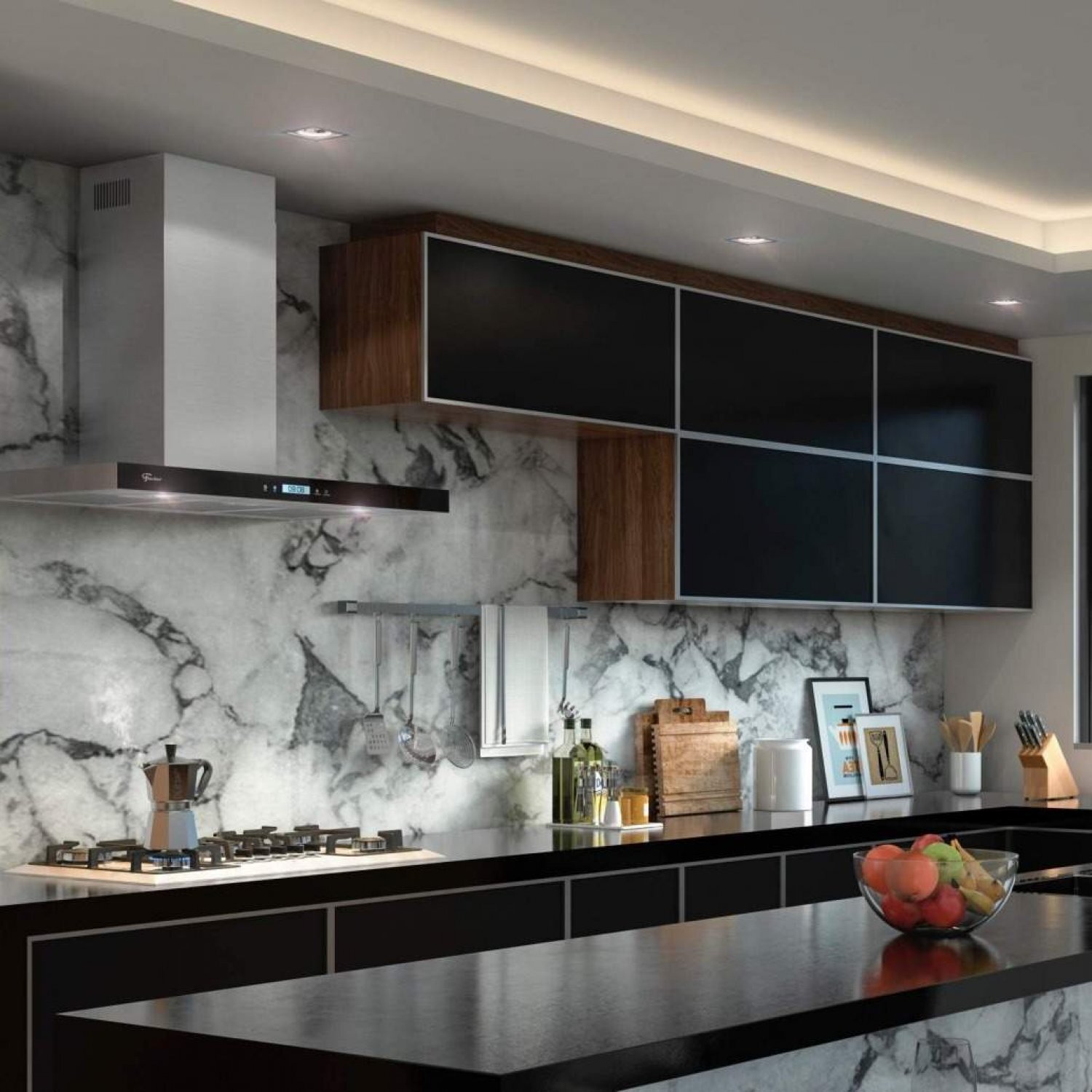 Coifa ilha, de parede e depurador.